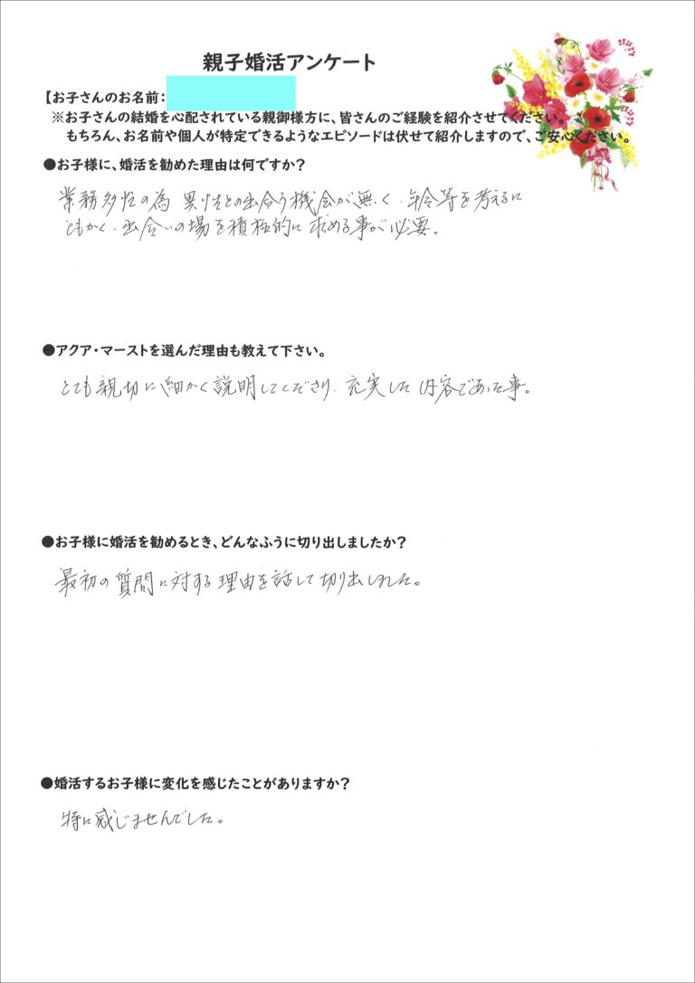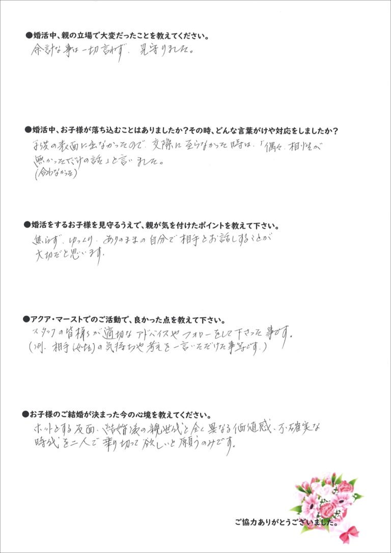 「親子婚活アンケート」を親御様よりご記入いただきました。